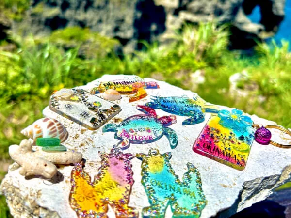 【万座毛 当日予約可能♪】キラキラレジンオリジナルキーホルダー作り!お好きなパーツ・ラメを使い世界に1つだけのキーホルダーを旅行の思い出に♪
