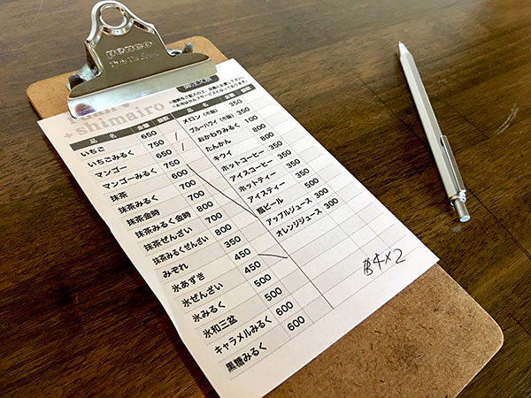 名前と人数を書いておいしいかき氷を想像しながらゆったり待ちましょう♪