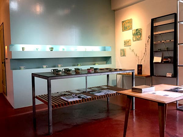 「瑠庵+島色」はかき氷専門店ですが、店内の一角に陶房ギャラリーが併設されています。