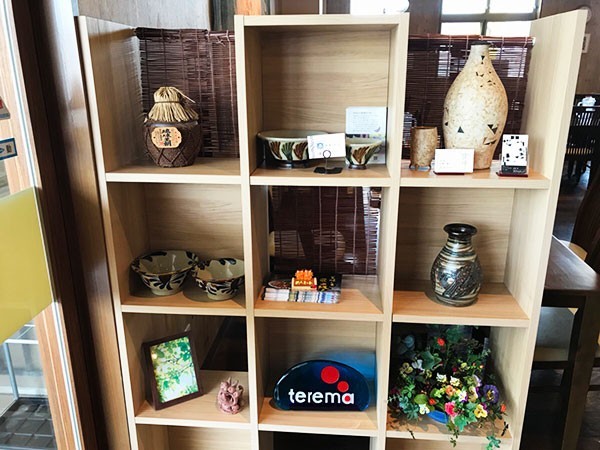 現在の店舗でも、やちむん(焼き物)達がお出迎えしてくれます