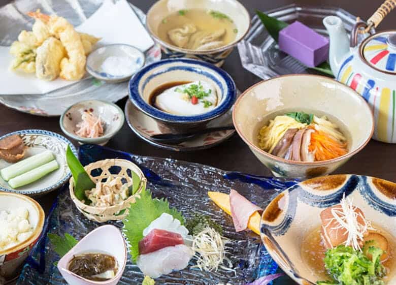 文化財や登り窯(のぼりがま)を眺めながら心ゆくまで舌鼓を打つ