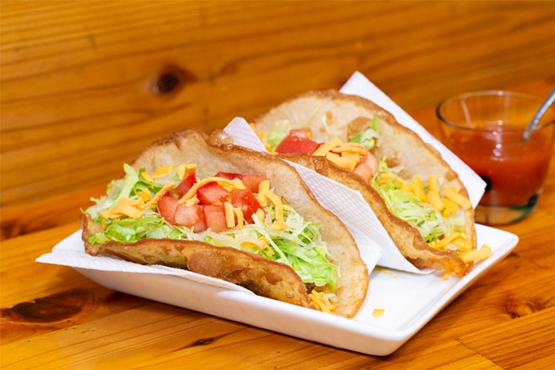平和通りで食べられるサクサク&もっちり生地の名物タコス -