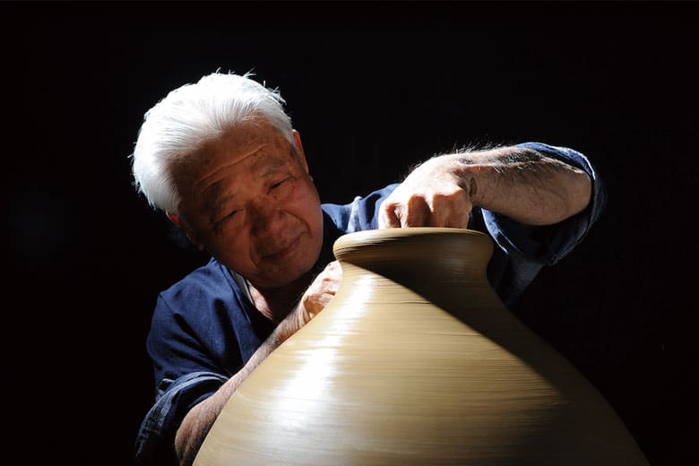 甕を造ることになったきっかけは、二代目であり現会長、 繁(しげる)氏の「良い古酒を造るためには良い甕が必要だ」という想いから。