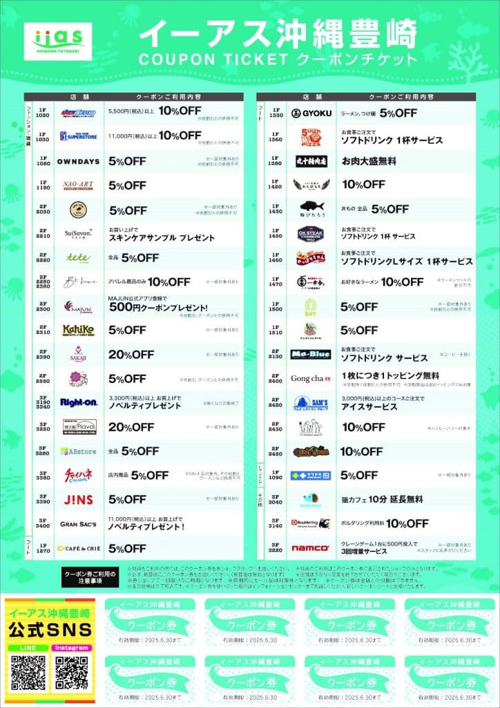 イーアス沖縄豊崎2Fのインフォメーションカウンターにて、当ページをお見せください。