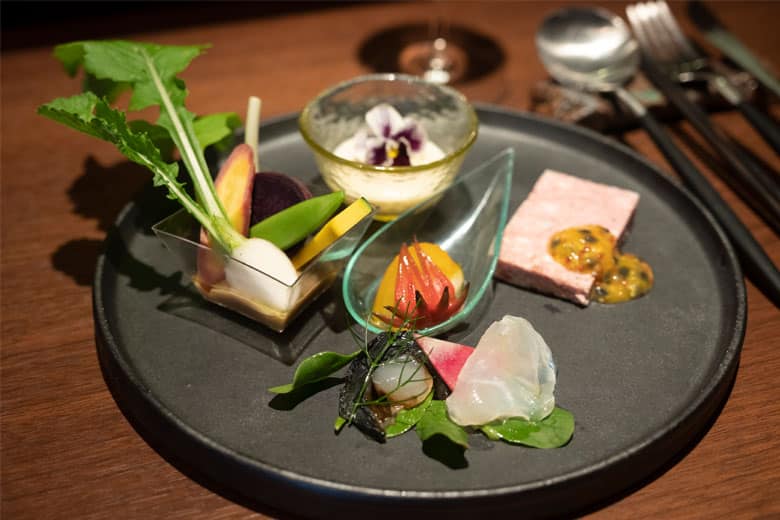 仕入れたばかりの新鮮な食材を使った前菜の盛り合わせ。