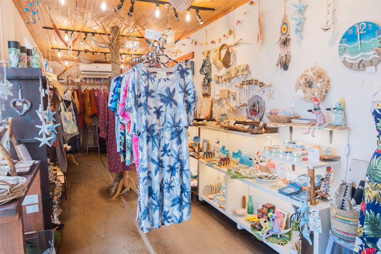 ここは宮古島で遊ぶためのファッションから美容グッズまで幅広く揃った、セレクトショップです。