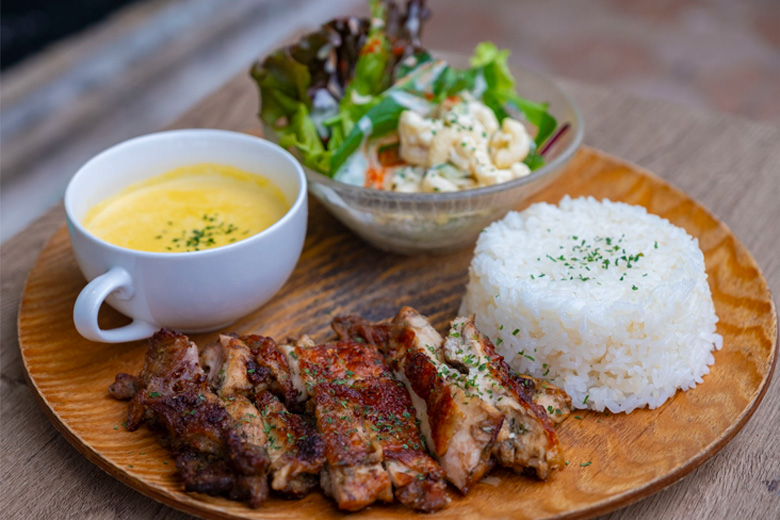 2.宮古ならではのスパイスに漬け込んだミャークチキンが主役、グローリープレート
