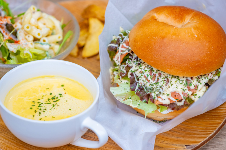 ベーグルサンドはボリューミーで食べ応えも十分!
