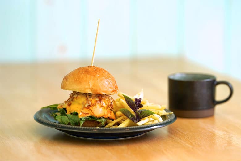 ハーブチキンには、タイムやカルダモンなどのハーブの他、カフェの敷地内で栽培しているホーリーバジル、バジル、レモングラス、ローズマリーも使用しています。