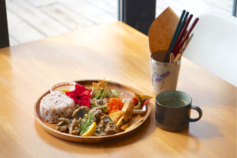 店内は、ハワイやアメリカ西海岸のイメージと石垣島のエッセンスを合わせた明るくゆったりとした雰囲気で、豊富なメニューから、体にも心にもやさしい、おいしい食事をお選びいただけます。
