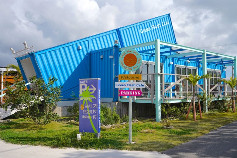 石垣島の市街地から車で約15分、南ぬ島石垣空港からも車で約15分とちょうど飛行場と街の中間地点に位置する「Green Flash Cafe 」は、コンテナを改装して作られたカジュアルなスタイルのカフェです。