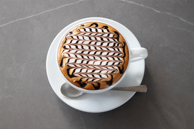 ドリンクも豊富で、写真のカプチーノ(750円)は機械で描かれているのかと思いきや、なんと1から人の手によって描かれたもの。