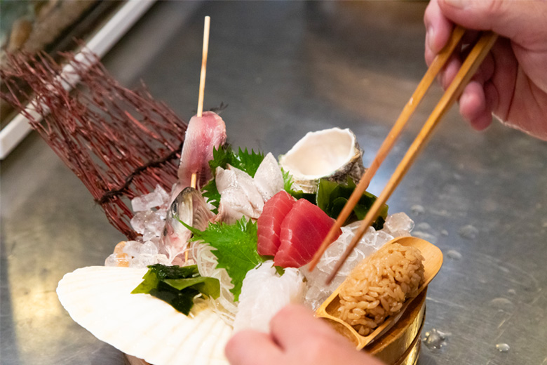 その日の仕入れで魚の種類はかわりますが、どの魚も驚くほど新鮮で、風味も歯ごたえも抜群。