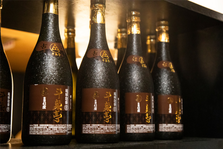 那覇にある泡盛酒造メーカー「瑞泉」が作る古酒で、コク深く豊かな風味が料理の味を引き立てます。