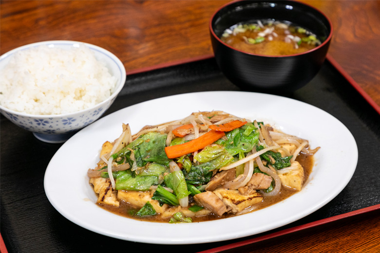 味が染みた豆腐にシャキシャキ野菜は、ほんのりお味噌が効いたやさしい味わいでご飯が進みます。