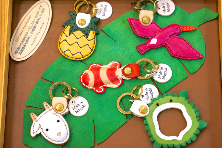 石垣島の暮らしの中で出会う生き物や植物がモチーフのキーホルダーは、どれも個性豊かでチャーミング。