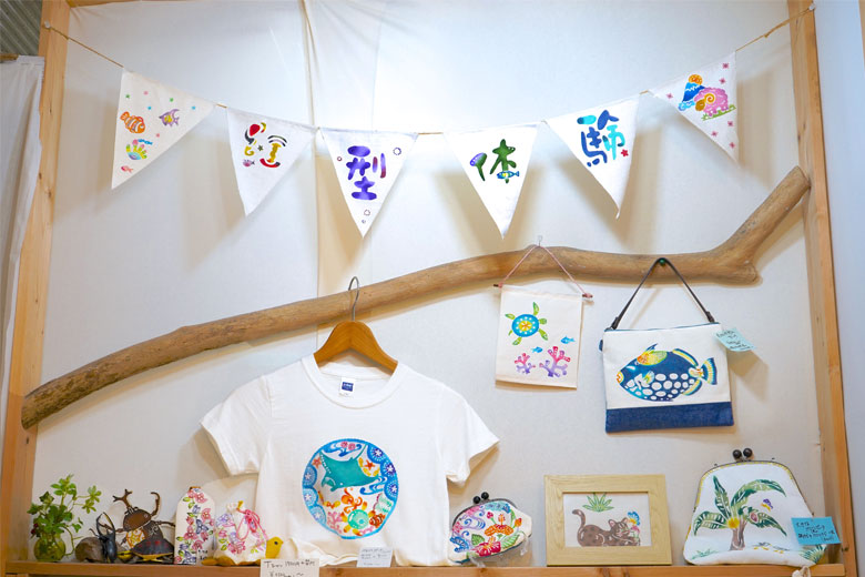 沖縄作家の手づくり商品がずらりと並ぶ店内には、ここでしか買えないものやオリジナル商品も。