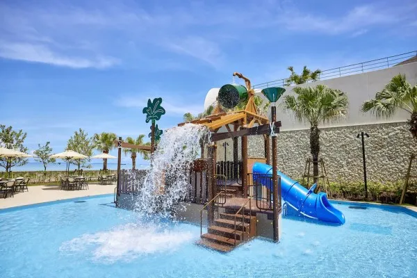 6つのプールとキッズプールをはじめ、ロングウォータースライダーやサウナなど完備した、東シナ海を望む緑豊かな丘の上のリゾートホテル!