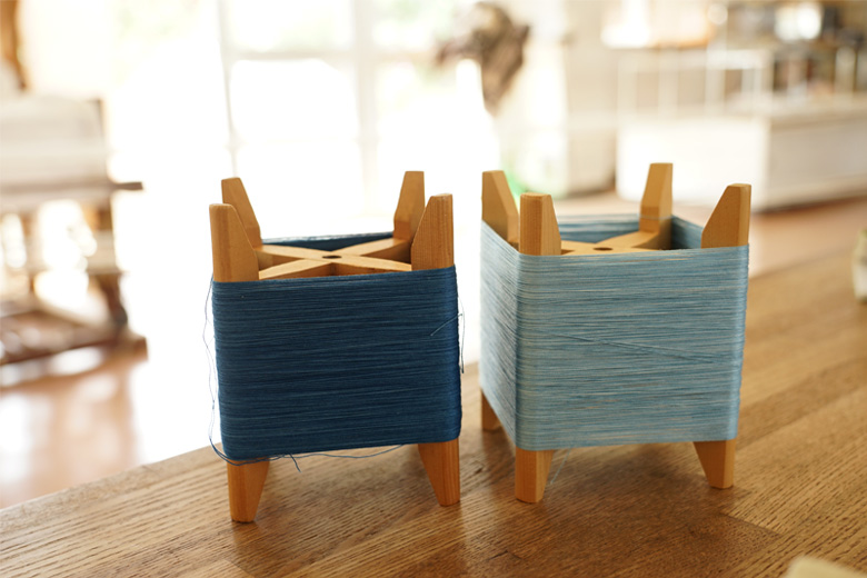 山に自生するものと工房の畑で育てられているものをつかい、すべて天然の染料で染められています。