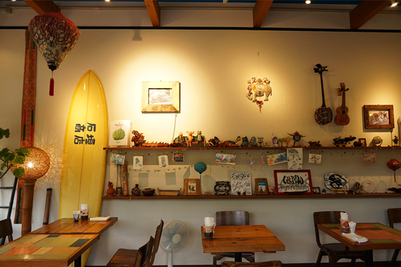 お店に、地域行事に、ライブにと忙しい毎日ですが、崎枝集落の入り口であるこの場所にお店を構えているので、明るい存在のお店となれたらと思っているのだそう。