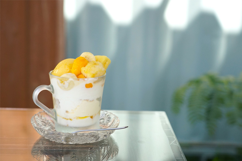 「トロピカルサンデー」は、お店の庭でとれる島バナナや、島のパイナップルなどがどっさり。