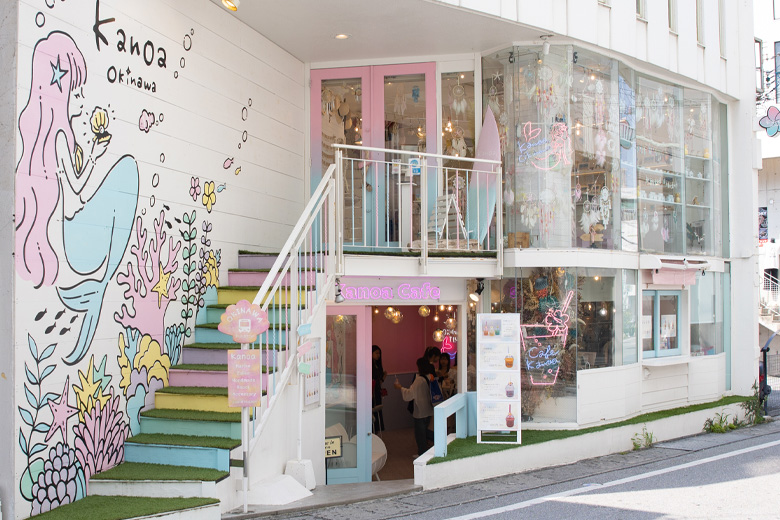 1階はカフェ、2階はアクセサリー&雑貨ショップ、そして3階の体験工房では様々なアイテムの手作り体験ができる「Kanoa 国際通り店」。