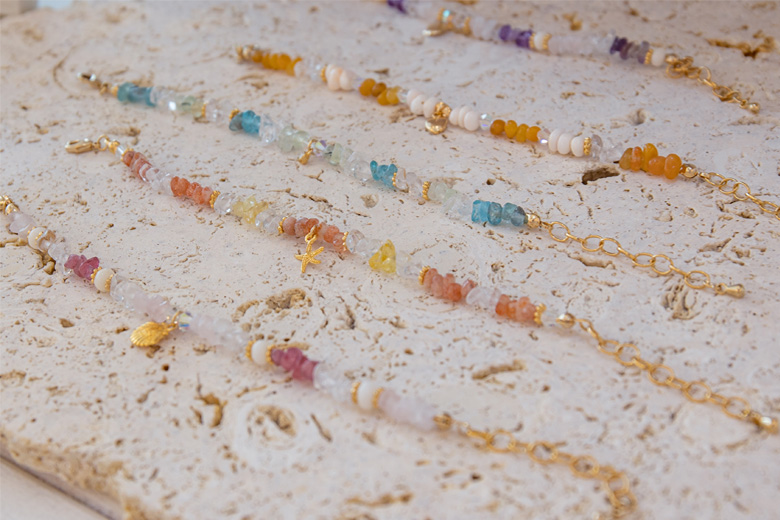 同じ天然石でも形や色味が異なるので、完成したブレスレットは世界にひとつだけ。