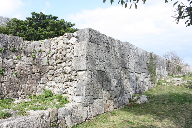 沖縄のグスクの石積みの代表的なものとして「野面(のづら)積み」、「布(ぬの)積み」、「相方(あいかた)積み」の3種類がありますが、勝連城の石積みは「布積み」です。