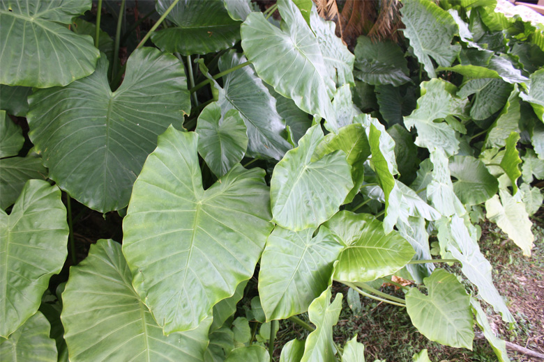 ウシヌジガマの近くには大きなクワズイモ!