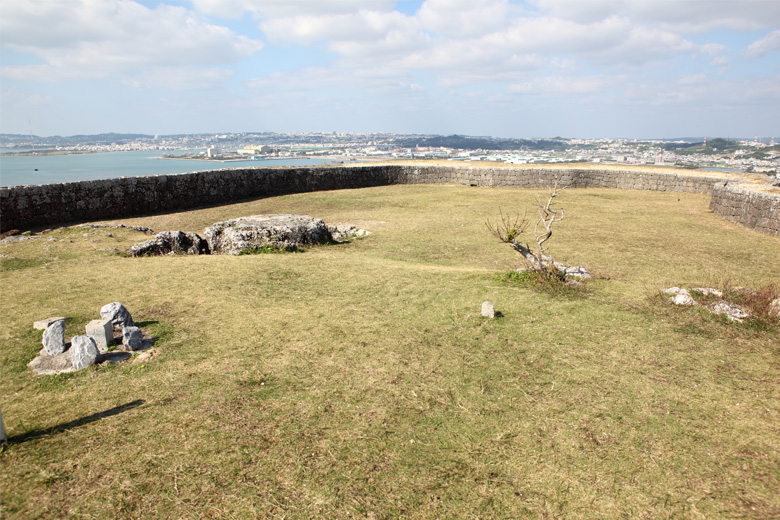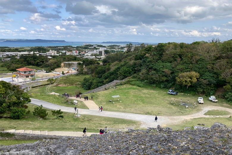 城跡内の最も高い位置にある「一の曲輪(いちのくるわ)」からは周辺離島や沖縄本島北部の山々、南部の知念(ちねん)半島まで見渡すことができます。