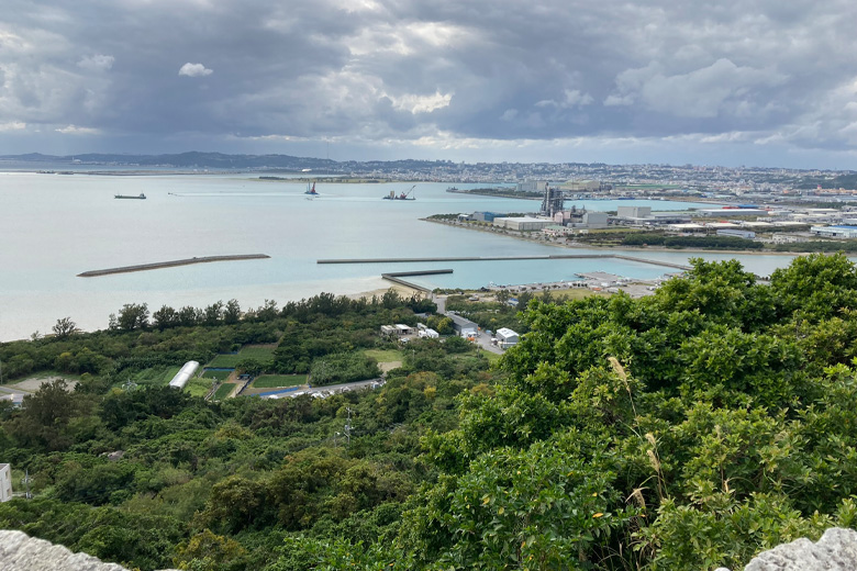 北は金武湾や北部の山々、南は目の前の中城湾や本島南部の知念半島までのぞむことができます。