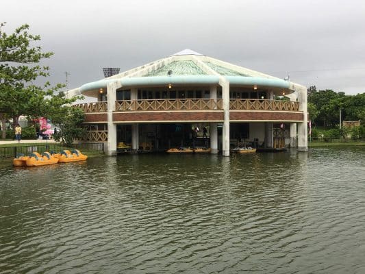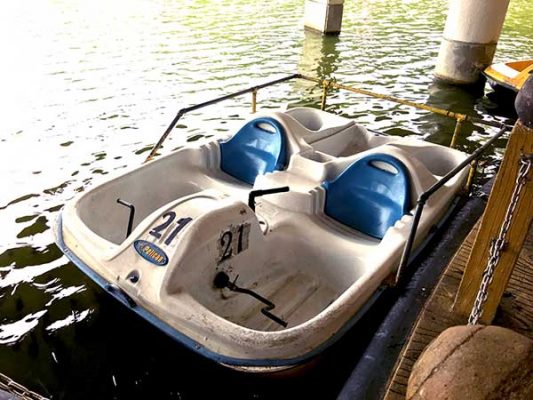 魚や、カメ、水鳥たちが住む望水亭を、足漕ぎボートで巡ります!