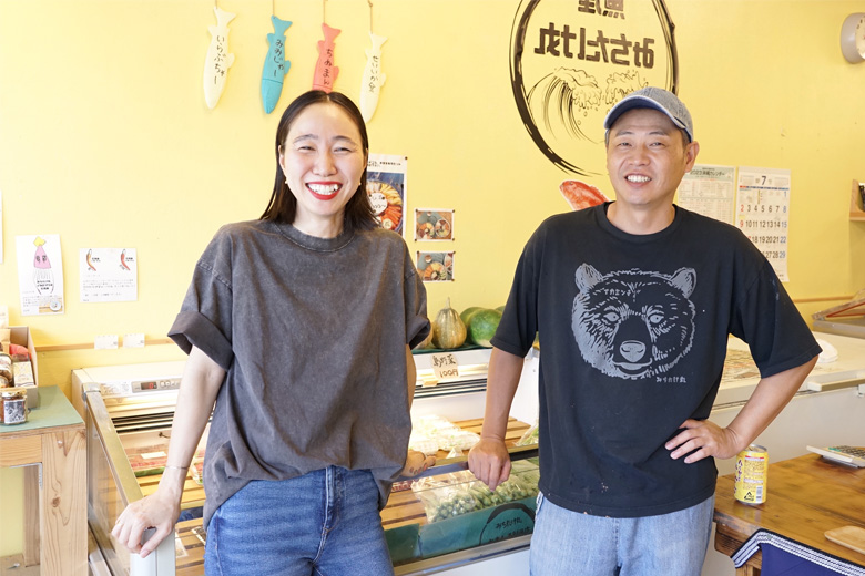 いま、みちたけ丸で漁に出て魚を獲ってくるのはふたりの弟、そしてひとり娘の姉が鮮魚店とおみやげ物屋を営んでいます。