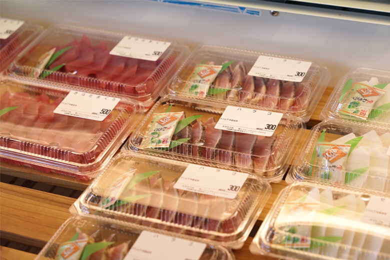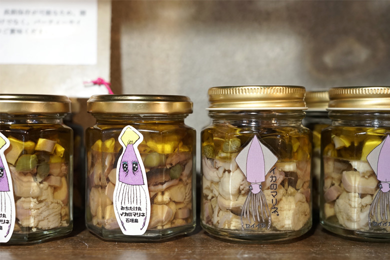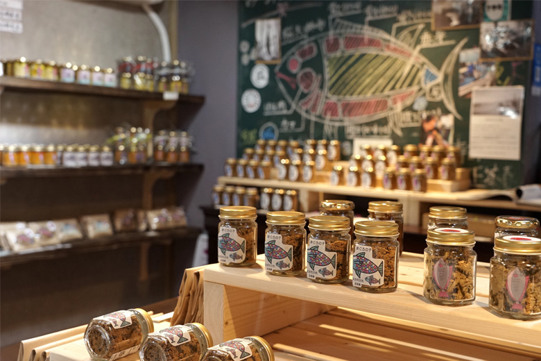 鮮魚店で刺身を買って食べるのもいいし、「ミチタケマルプラス。」のかわいくておいしい瓶詰めは、おみやげに喜ばれること間違いなしです。