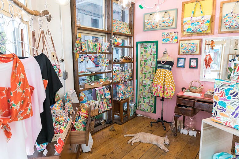 「MIMURI」にはエネルギッシュな色をまとった沖縄のあれこれがデザインされたアイテムが並びます。