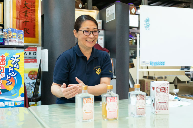 ジンを作ったことで瑞穂酒造の蒸留技術の高さが知れ渡り、いろいろなところから商品開発のオファーがきていたと話す玉那覇さん。