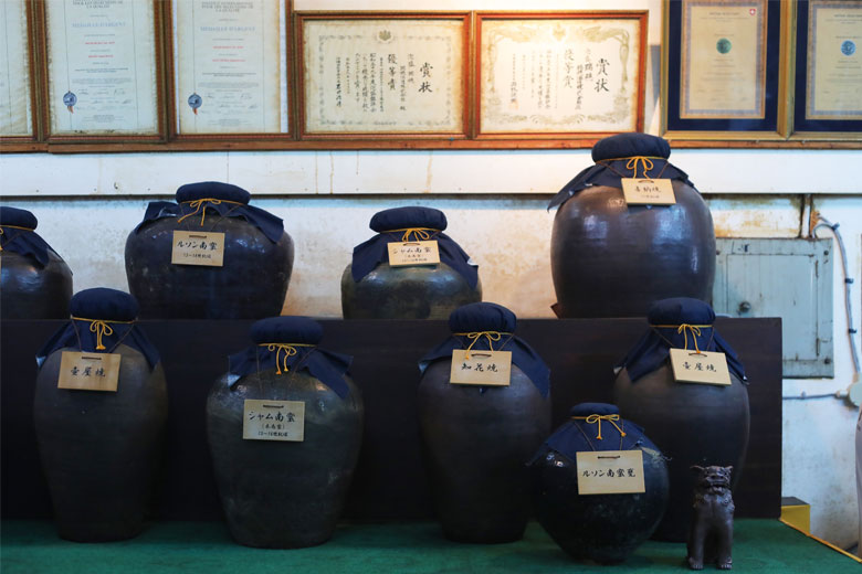 瑞穂酒造が酒造りを始めたのは1848年、当時はまだ琉球王府が治める時代で、泡盛は貴重な酒として、首里三箇(しゅりさんか)という、王府の命を受けて泡盛の製造を許可された地域(現在の鳥堀、崎山、赤田の3町)でのみ造ることを許されていたそう。