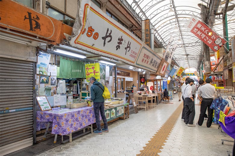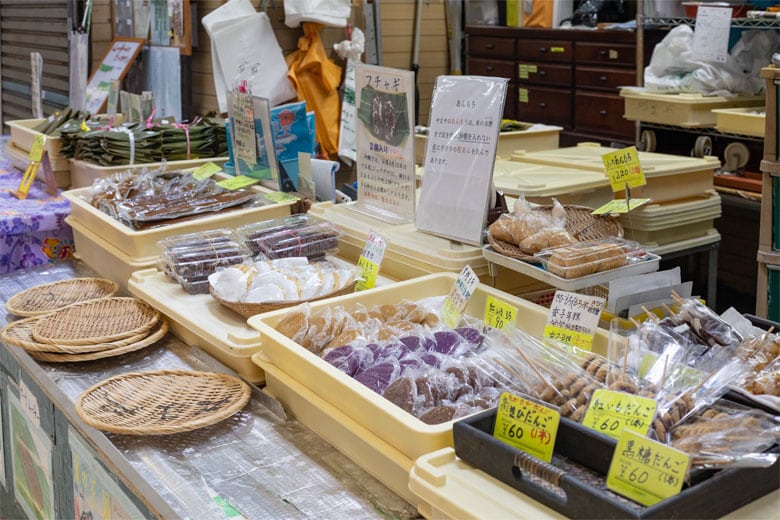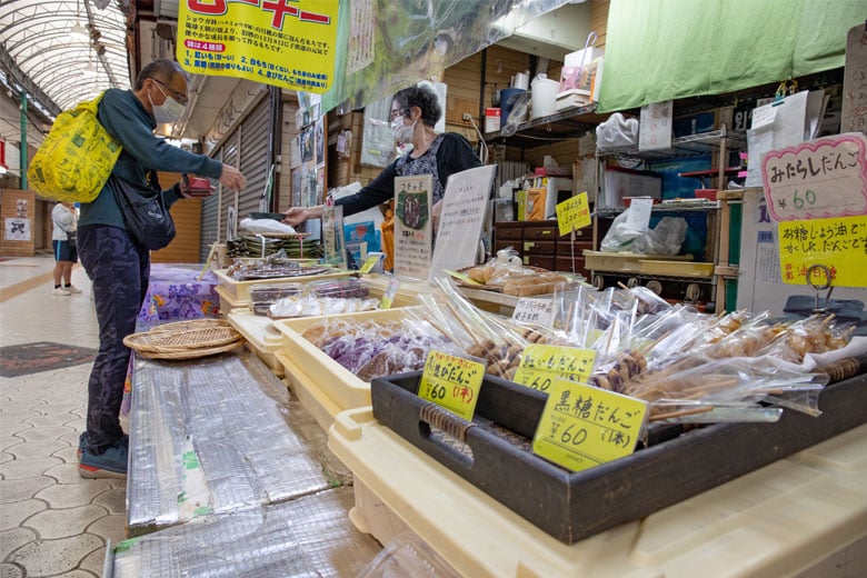 おすすめは、国際通りから入るアーケード街「市場本通り」沿いにお店を構える「もちの店 やまや」。