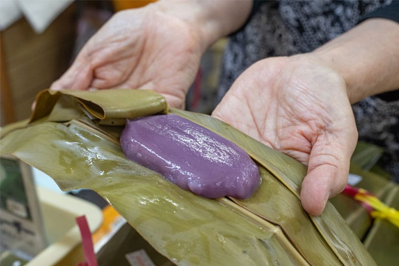 ほんのり甘く、爽やかな香りがする月桃の葉に包んで蒸したお餅は「どこか懐かしい味がする」と観光客からも人気です。