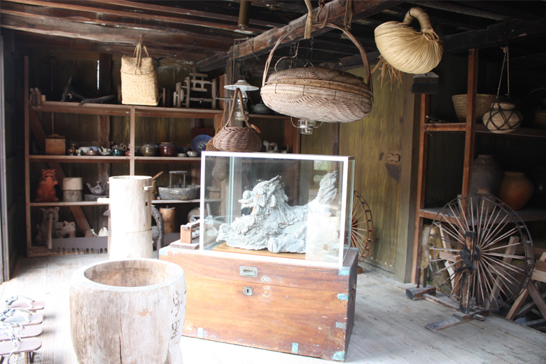 作業部屋は、現在は見学者が楽しめるように物置部屋となっており、小学生の社会見学などでも利用できるよう、昔の古い道具や漆喰(しっくい)シーサーなどが置かれています。