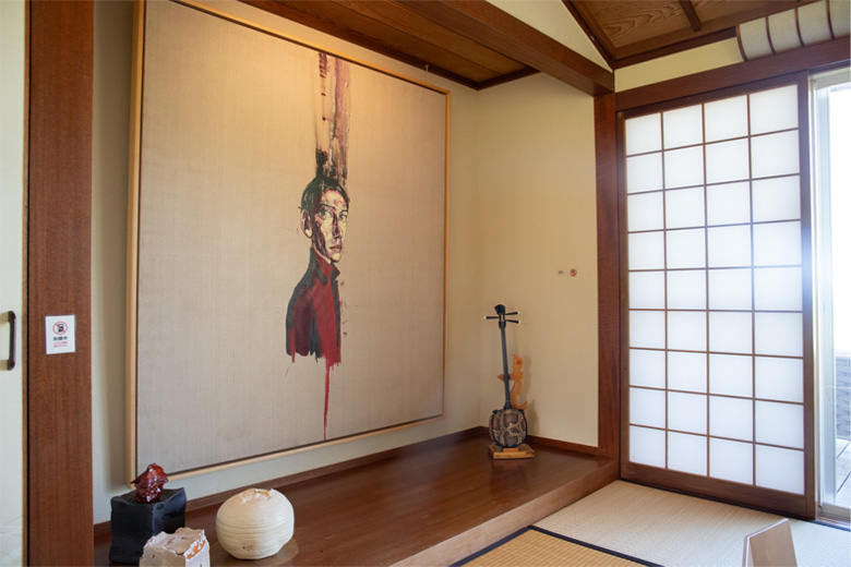 「美は生活の中、暮らしの中に存在する」というコンセプトのもと、西大学院時代にオーナー夫妻が実際に暮らした住居にすこし手を加え、生活に馴染ませるように作品を展示しています。