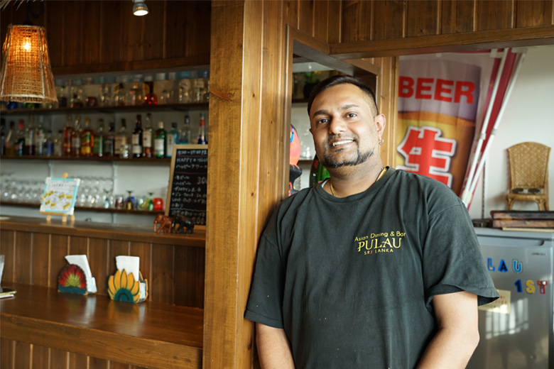 石垣島の中心街にある、アジアンダイニングバー プラウ スリランカは、スリランカ人シェフのシャンさんが切り盛りするスリランカカレーのお店。