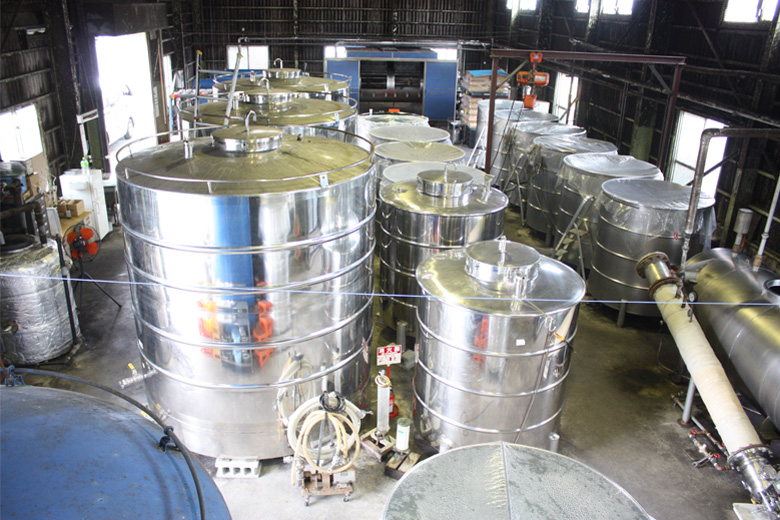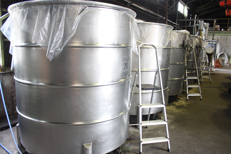 出来上がった原酒は、貯蔵タンクで1年以上寝かせます。