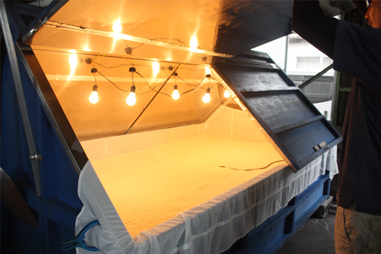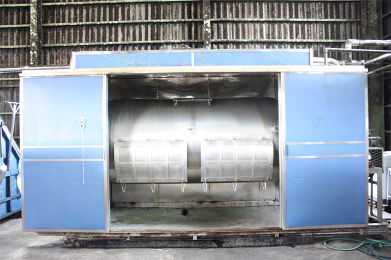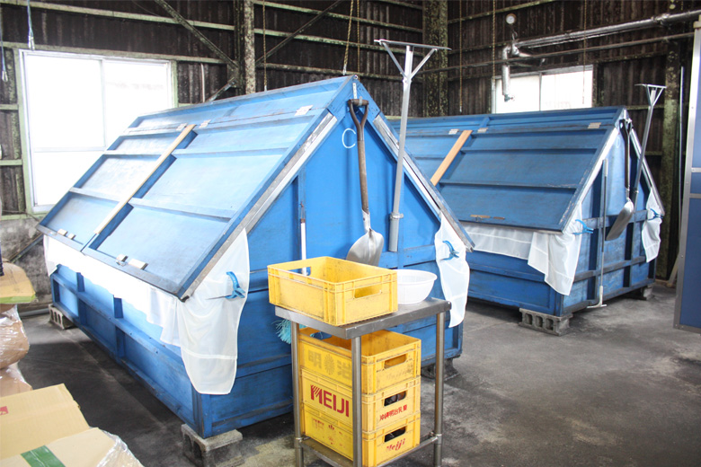 洗米したお米の水を切ったら、1時間かけて蒸気で蒸し、黒麹菌を入れて一晩寝かせます。