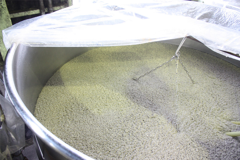 米麹に水と酵母を加えてアルコール発酵をさせています。