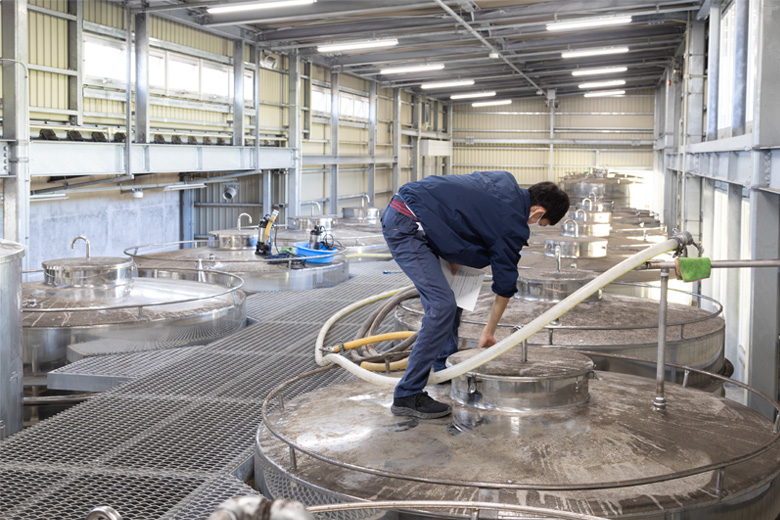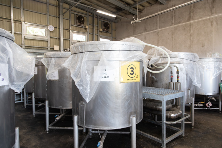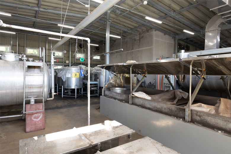 新工場は2階建てで、貯蔵タンクも大幅に増え、パワーアップしました。