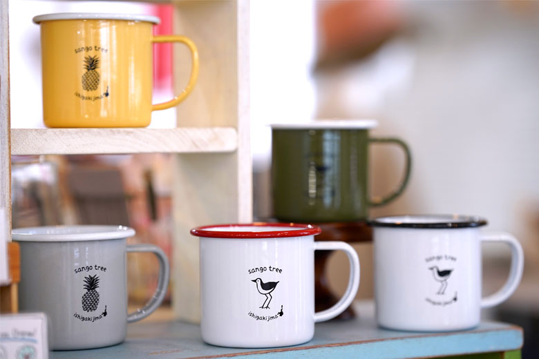 ホーローのマグカップには、石垣島のパインやシロハラクイナがワンポイントに入ったキュートなデザインが魅力です。