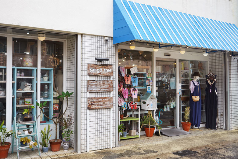 石垣港離島ターミナルから徒歩5分、ユーグレナモールの入り口に位置する「サンゴツリー」は、数々のオリジナル商品とセレクトグッズが揃う人気店です。