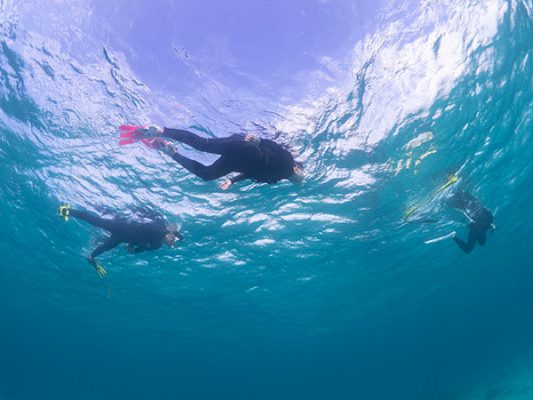 海を熟知し、専門の訓練を受けたプロガイドが引率しますので、安心・安全にシュノーケリングをお楽しみいただけます。また、シュノーケル器材の使い方や泳ぎ方、その他注意点など、丁寧なレクチャーもあり、未経験の方でもご参加が可能です。