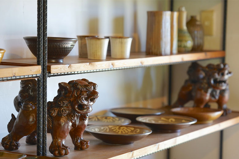 ふだん使いにもってこいの器から、オリジナルのシーサーや個性的な一点物の器まで、幅広いセレクトの「やちむん」が揃っています。